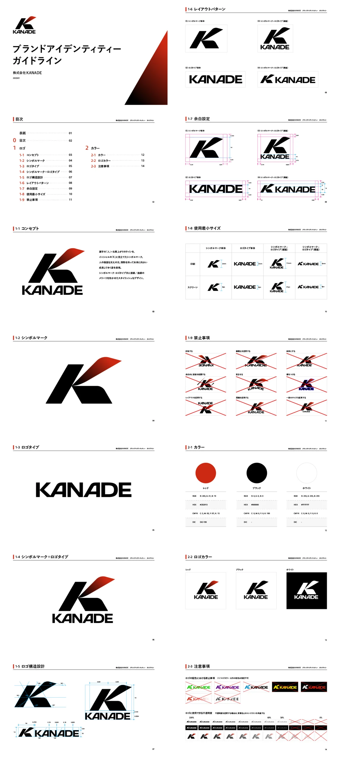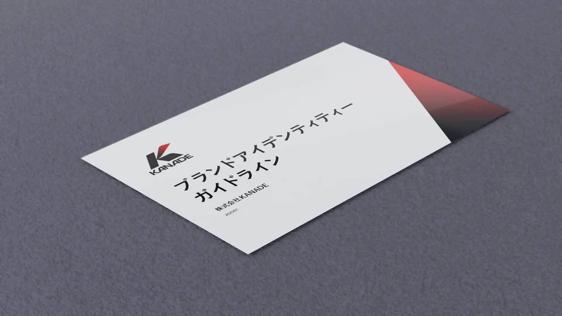 株式会社KANADE代表の菊地様とのヒアリングから「人との繋がり・協力体制・周囲への気配り」を大切にされている想いを受け、漢字の「人」が土台となってイニシャルKを形作るシンボルマークを考案しました。